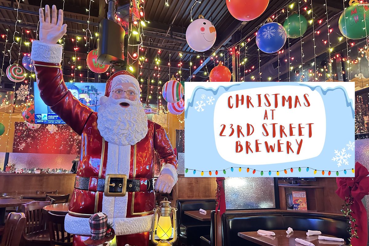 MIRACLE AT 23RD STREET IS A CHRISTMAS EXPERIENCE FOR THE WHOLE FAMILY IN LAWRENCE KANSAS AT 23RD STREET BREWERY. OUR ENTIRE RESTAURANT IS TRANSFORMED BY LIGHTS & DECORATIONS TO MAKE YOU FEEL THE JOY OF THE CHRISTMAS SEASON .OUR FULL FOOD & DRINK MENU AVAILABLE, PLUS SPECIALTY FOOD & DRINKS TO HELP BRING CHRISTMAS CHEER TO ALL!